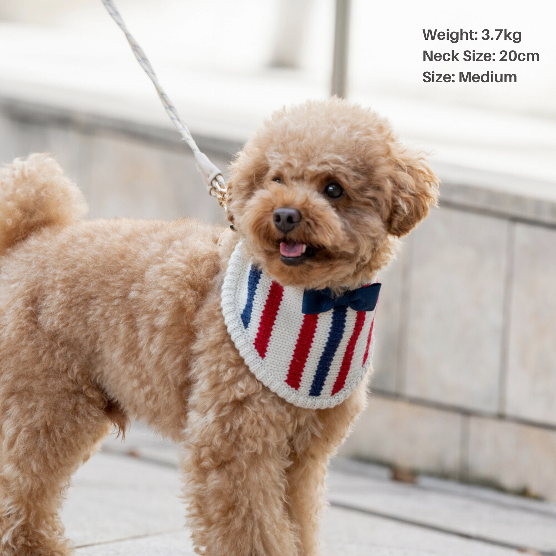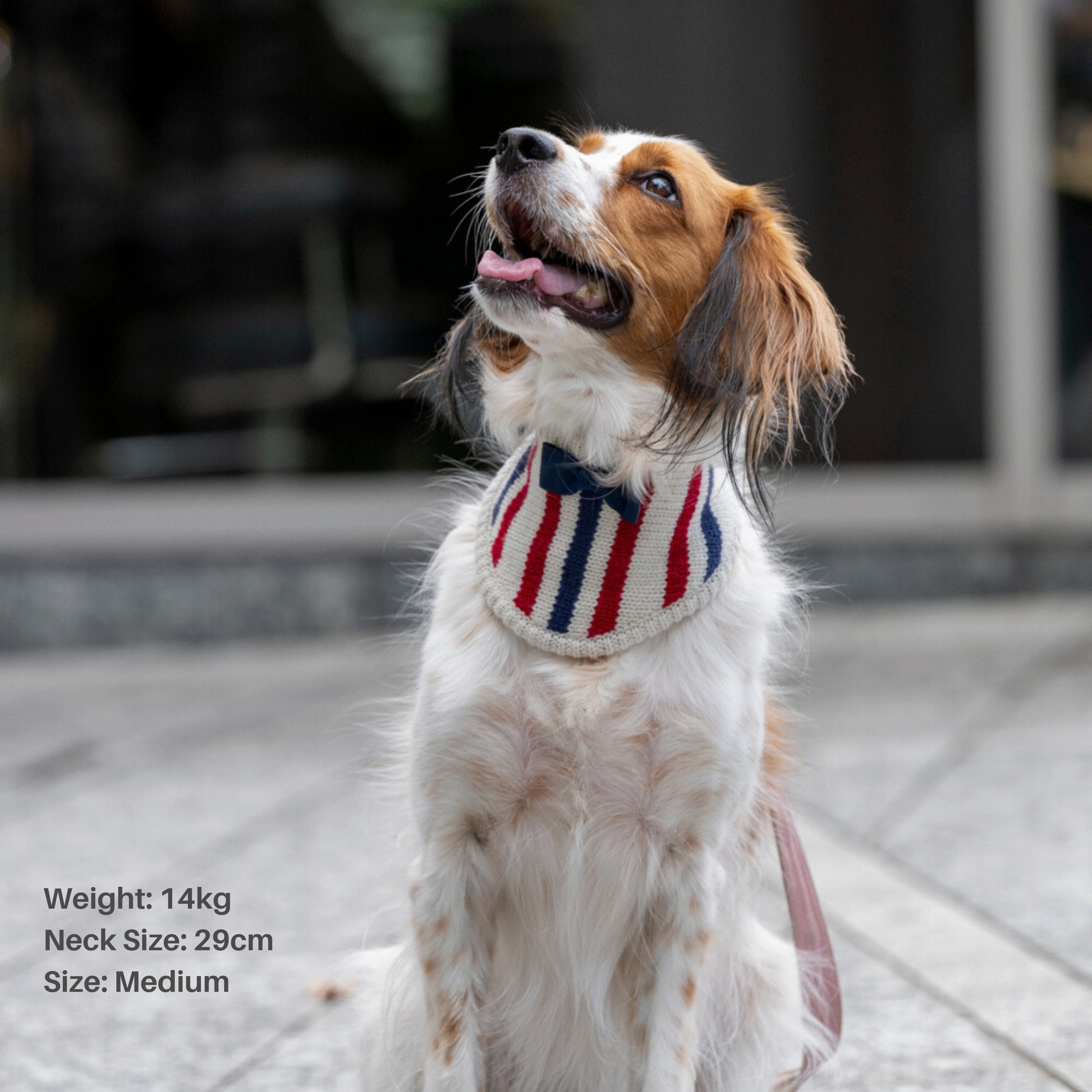 ■ KNIT BANDANA:柔らかく厚みのあるニットに、トリコロール柄とネイビーのリボンをあしらったデザインがチャームポイント。上品さと可愛らしさを兼ね備えた一枚。
